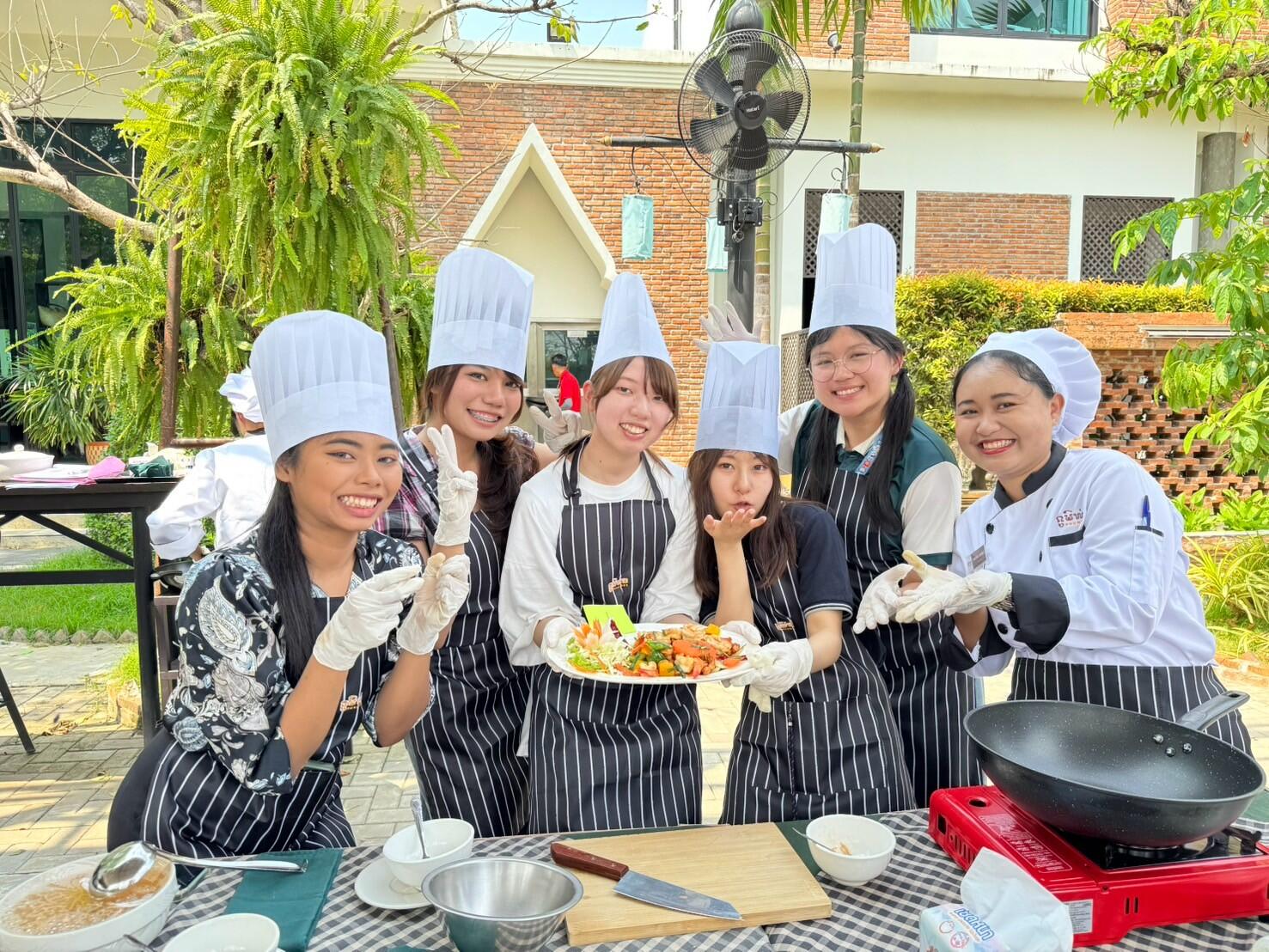 叩き染めという手法を用いたトートバッグの作成やタイ料理の調理体験を行いました。タイ王国の文化や価値観に触れることができた貴重な体験でした。本科目を履修した学生からは、「よりいっそう、英語でのコミュニケーション能力を向上させる必要性を実感でき、いい経験になった」、「タイの医療現場や日本とは異なる医療の現状について学ぶことができた」などの感想が聞かれました。