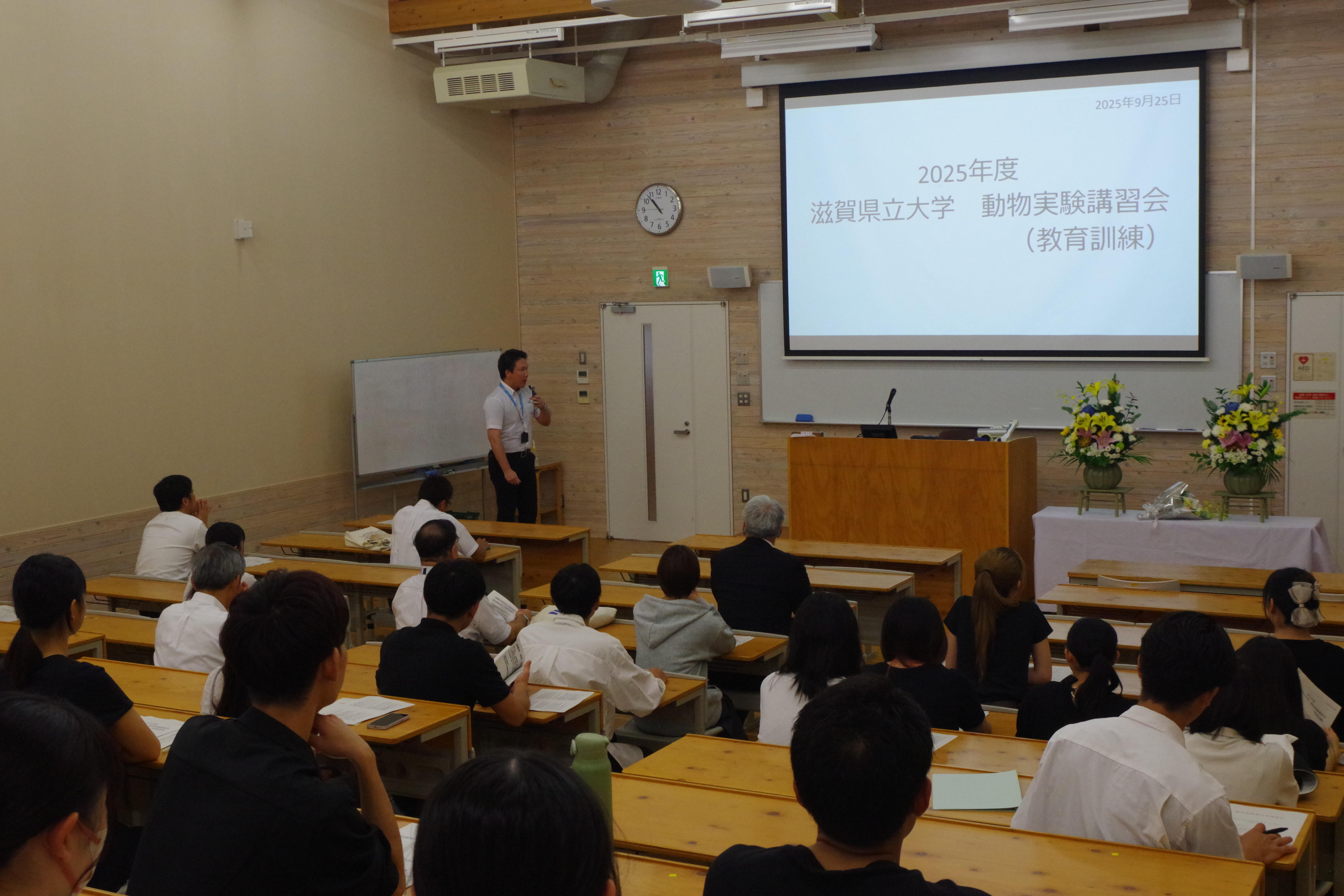また、人間文化学部生活栄養学科の桑原准教授、環境科学部生物資源管理学科の中川講師より、学内で動物実験を行う教員・学生を対象に動物実験講習会(教育訓練)を開催し、動物実験に関する制度や基本的な知識、本学における取組状況、人獣共通感染症などを学び、理解を深めました。