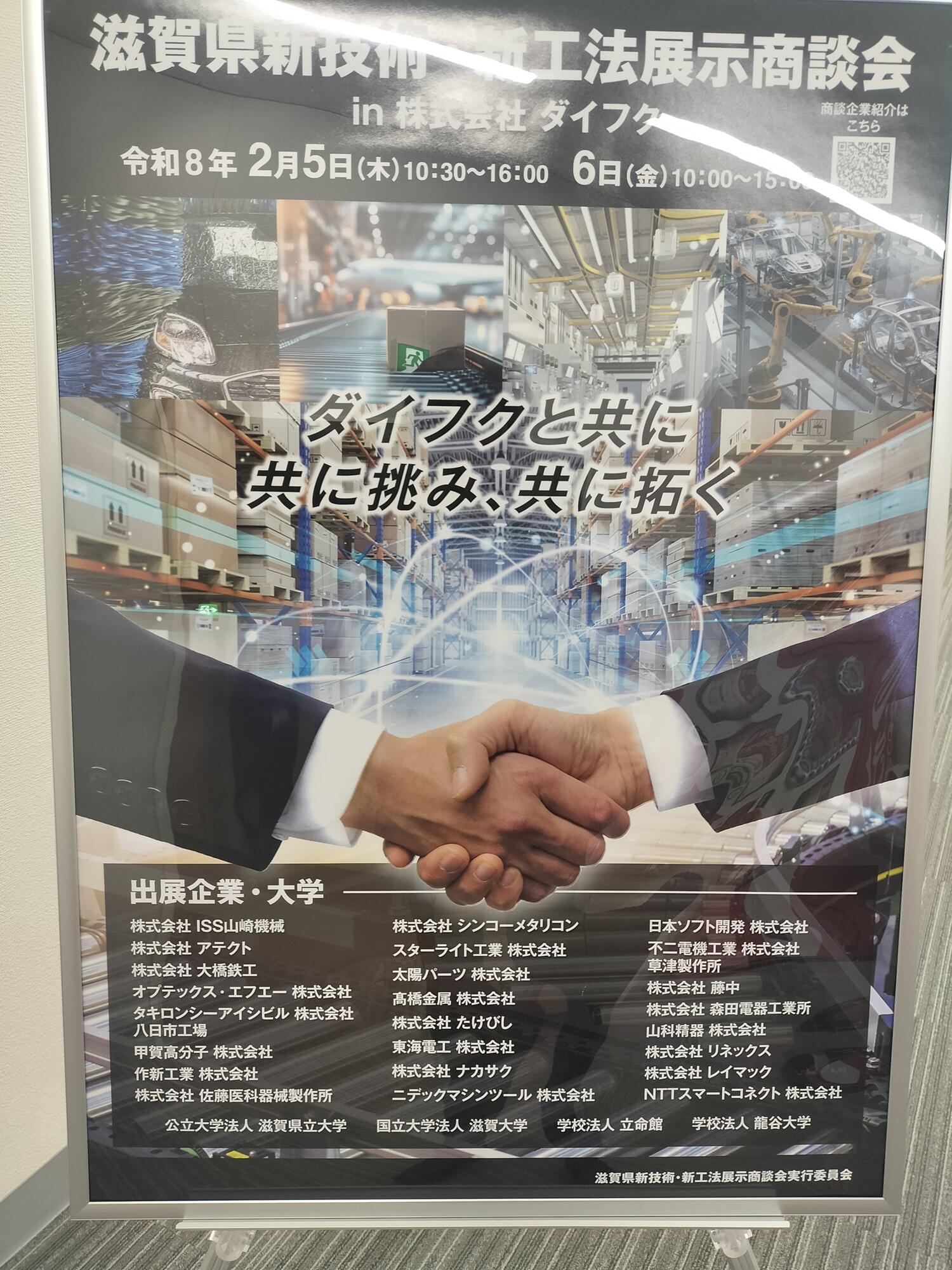 「滋賀県新技術・新工法展示商談会in株式会社ダイフク」に出展し、本学の産学連携およびICT研究・人材育成についての取組を紹介しました!