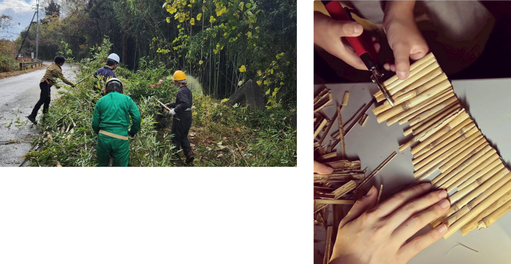 竹林GAKUは、犬上川沿いの竹林整備を中心に、放置竹林の解消や景観・環境の保全に取り組んでいます。今年は、鳥居本T63の皆様の協力により竹の粉砕機を導入し、竹林整備作業をよりスムーズに進められる体制が整いました。また、伐採した竹を活用し、竹あかりやアクセサリー、竹の風鈴などの制作にも取り組むなど、地域資源を生かした活動を通じて、都市と農村をつなぐ交流の創出にも力を入れています。